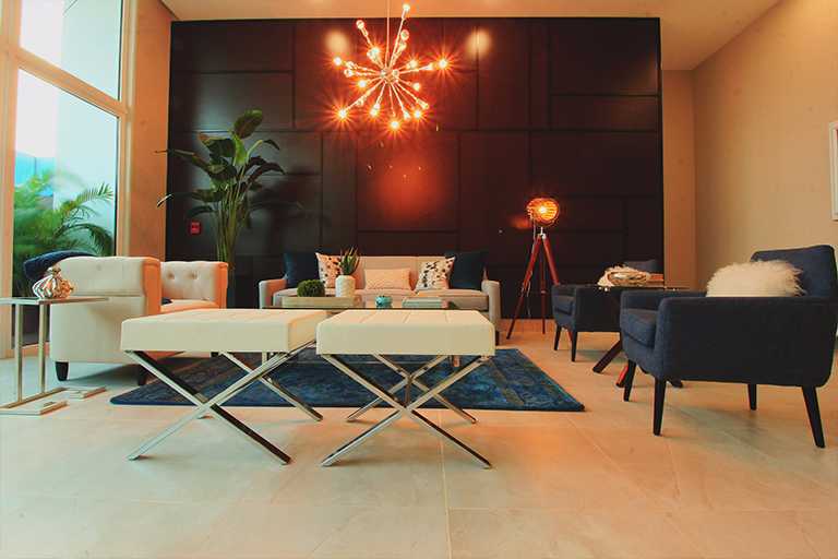 Lobby completo con recepción y area de espera